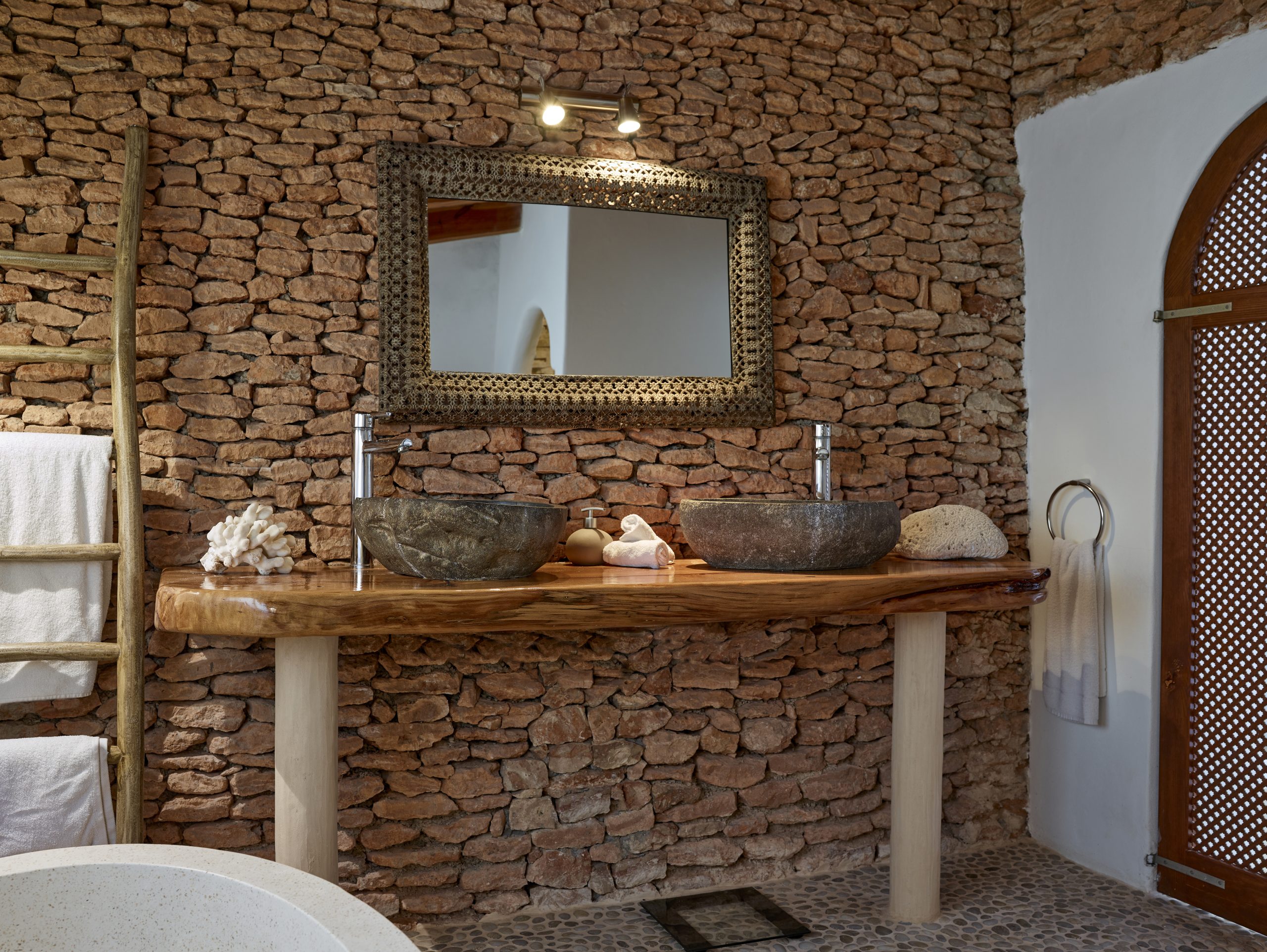Restored stone walls and double stone washbasins