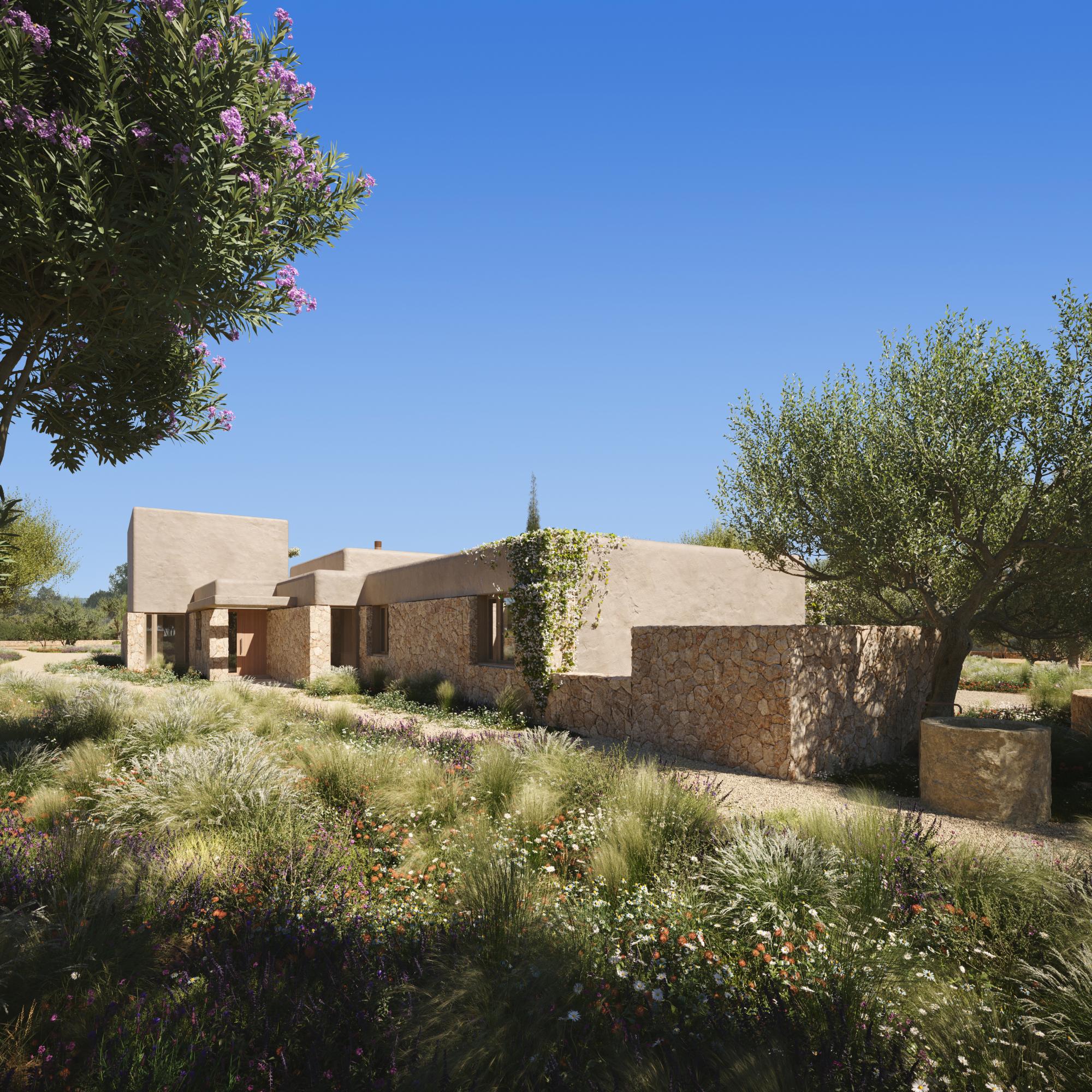 A proposed project for this 270m² villa combines sleek contemporary design with the timeless charm of Ibiza architecture. Featuring expansive windows and an open-plan layout, the villa is designed to embrace natural light and optimize its stunning views. The proposed design also includes a spacious basement, allowing ample space for customization.