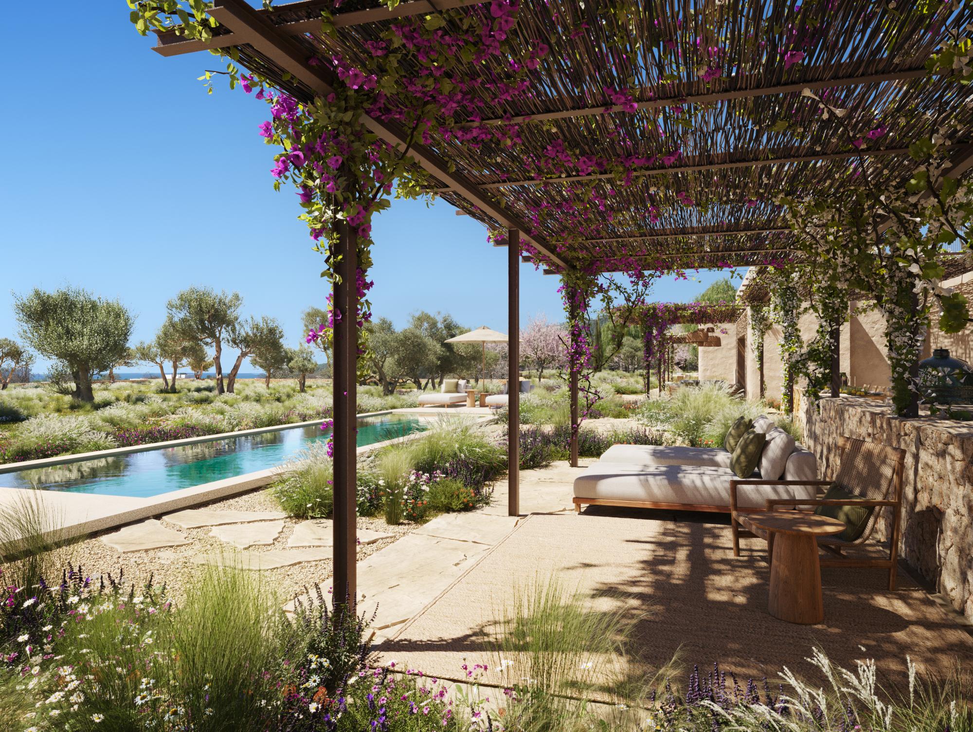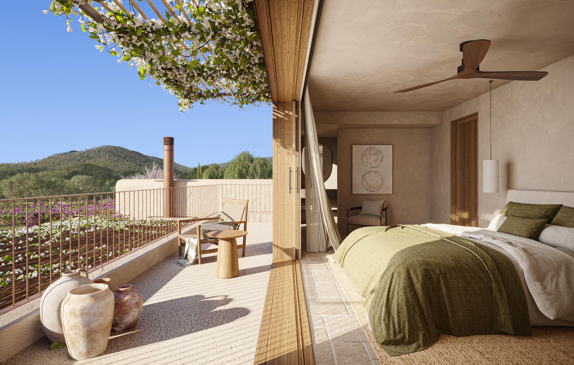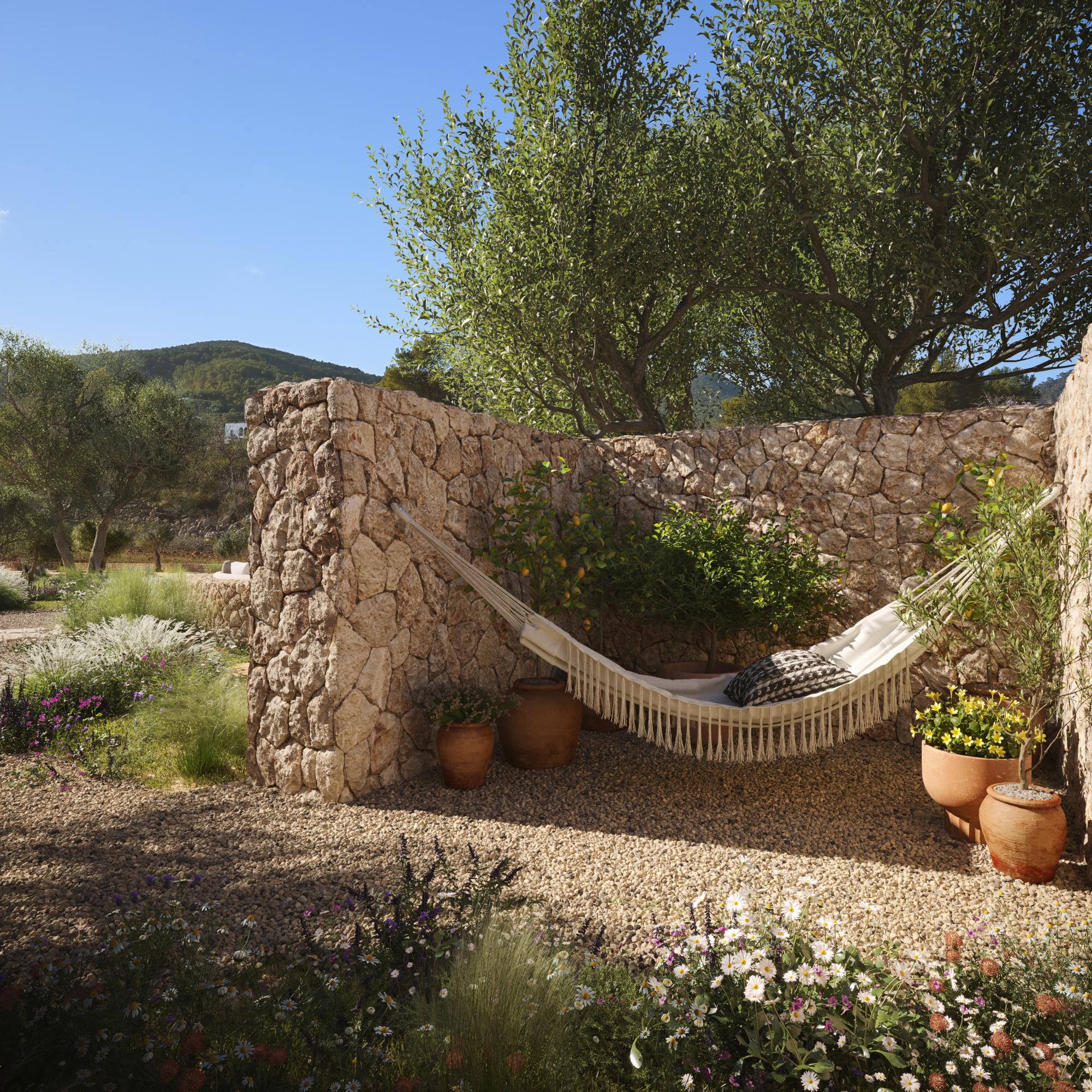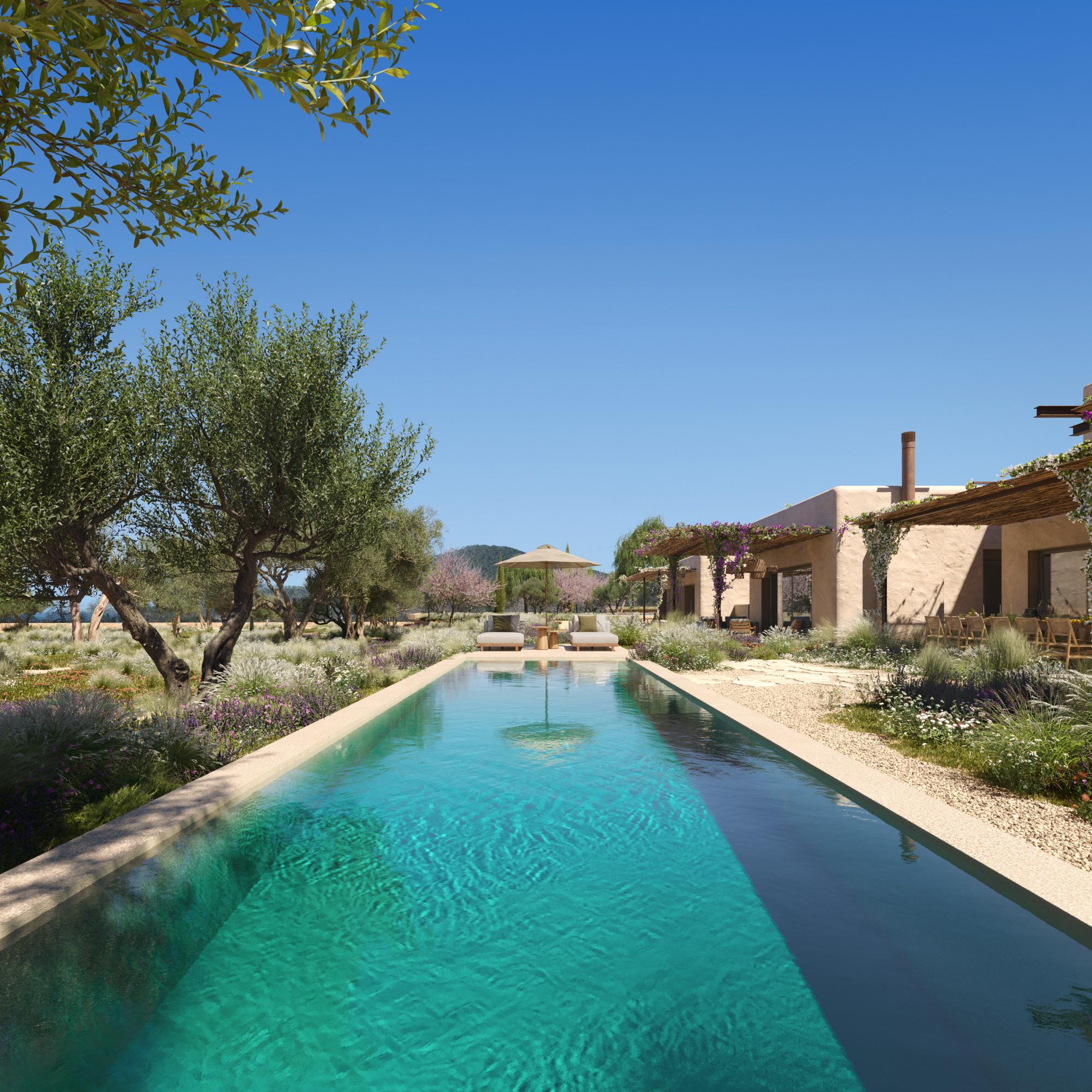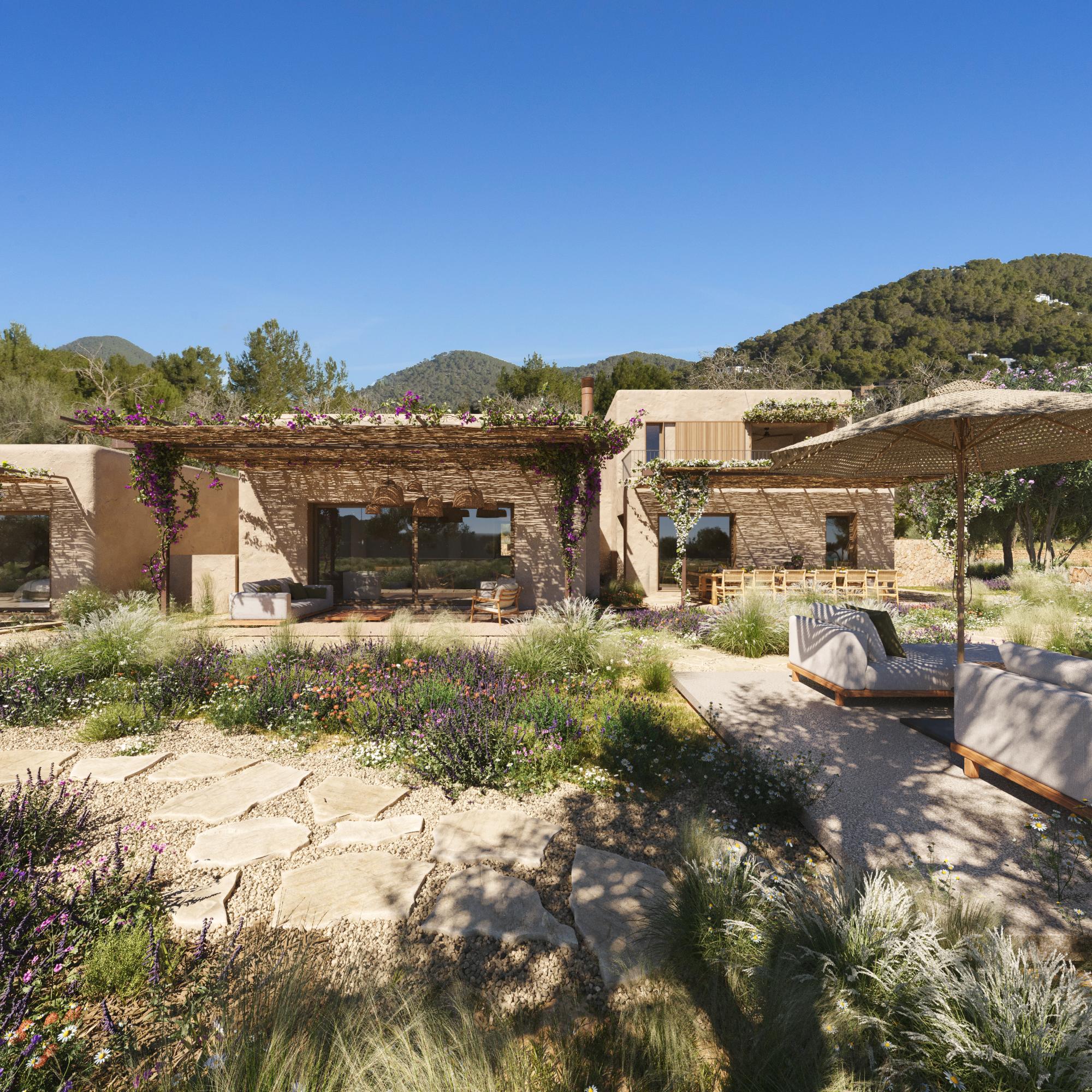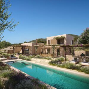 The outdoor spaces include lushly landscaped gardens, a sparkling swimming pool, and expansive terraces designed for alfresco dining and lounging under the Mediterranean sun. The villa’s private outdoor spaces make it ideal for enjoying the Ibizan lifestyle.