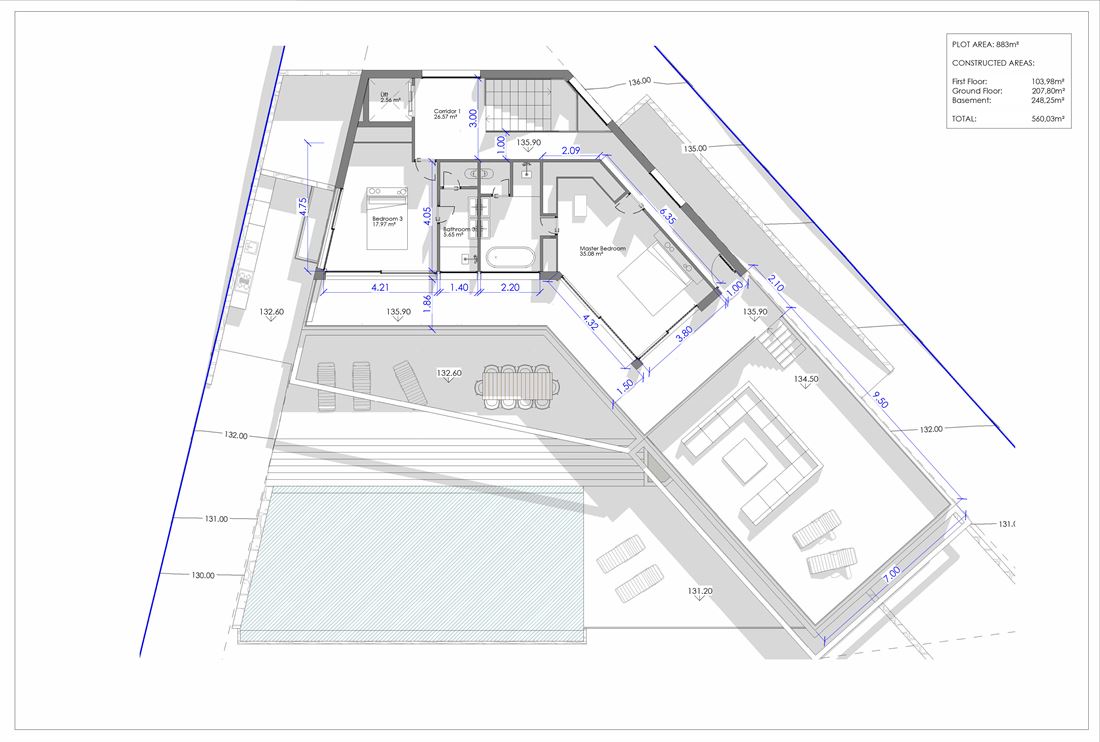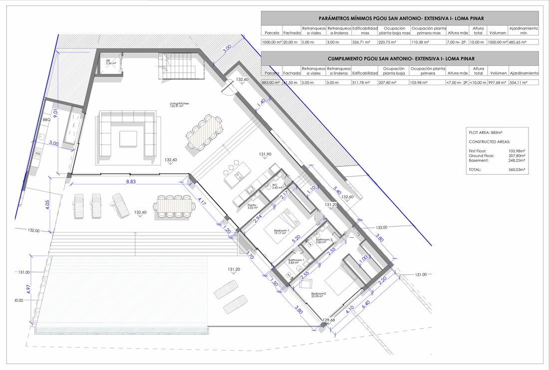 Explore this exceptional land plot for sale Can Germa Ibiza, offering a rare opportunity to create your ideal home in one of Ibiza’s most coveted locations. This exquisite project encompasses an 883-square-meter plot with a swift 30-day permit, allowing for the construction of a 326-square-meter living space. Additionally, you can enjoy an expansive 248 square meters in the basement and a generous 60-square-meter pool, all while being surrounded by breathtaking panoramic sea views.