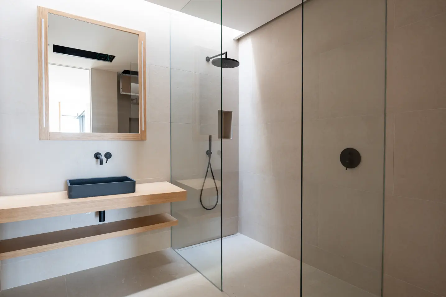 La Brise offers 6 en-suite bedrooms, each designed with luxury in mind. With built-in wardrobes, stunning views of the sea, and cityscapes over Dalt Vila, these bedrooms are perfect private retreats. The villa also features underfloor heating, central A/C, and high-quality luxury finishes, ensuring comfort and elegance at every turn.