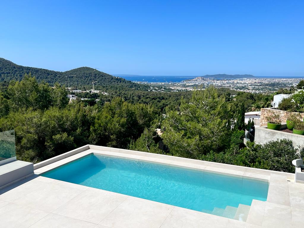 The outdoor spaces are equally impressive, featuring large terraces, a private pool, and stunning panoramic views. Imagine enjoying the Ibiza sunsets from your private garden or cooling off in the pool with views that stretch out to Formentera.